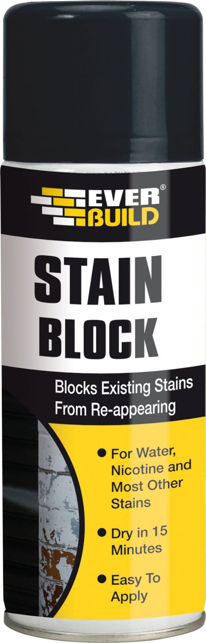 Stainblock is a spray applied heavily pigmented white paint which permanently prevents existing stains from water, mould, rust, nicotine, grease, soot, crayon showing through subsequent coatings. Quick drying, overcoat in 15 mins.